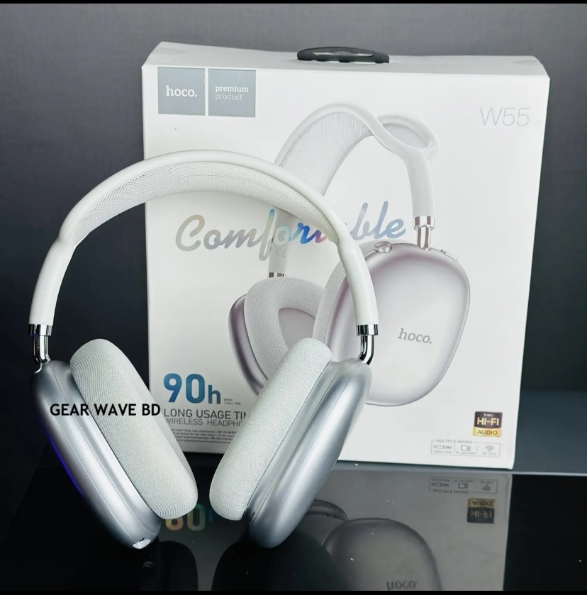 hoco W55 – تصميم عصري ✨، راحة تدوم 💆♂️، وصوت لا يُضاهى 🎶.