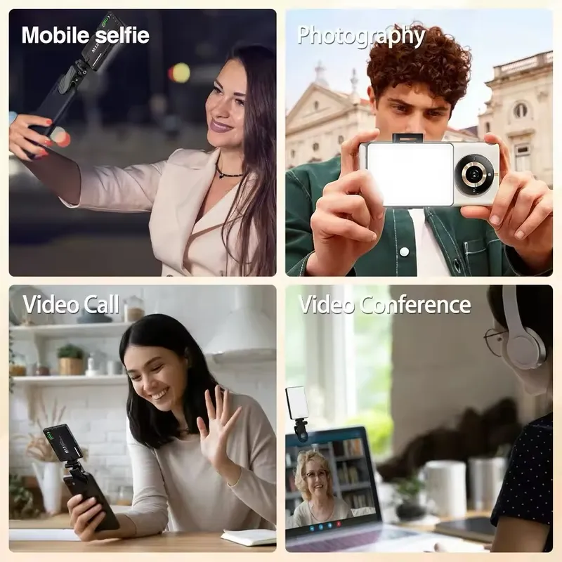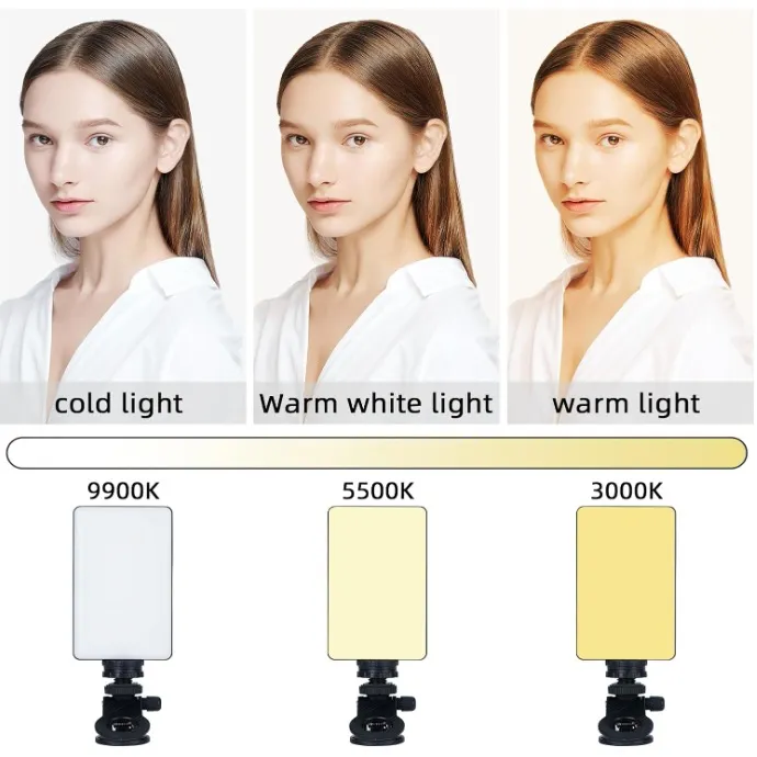إضاءة تصوير احترافية بثلاثة أوضاع: بارد (9900K)، أبيض دافئ (5500K)، ودافئ (3000K)! • مثالية للتصوير الذاتي، اجتماعات الفيديو، البث المباشر، والرحلات. • تصميم مدمج وسهل الحمل يناسب كل احتياجاتك