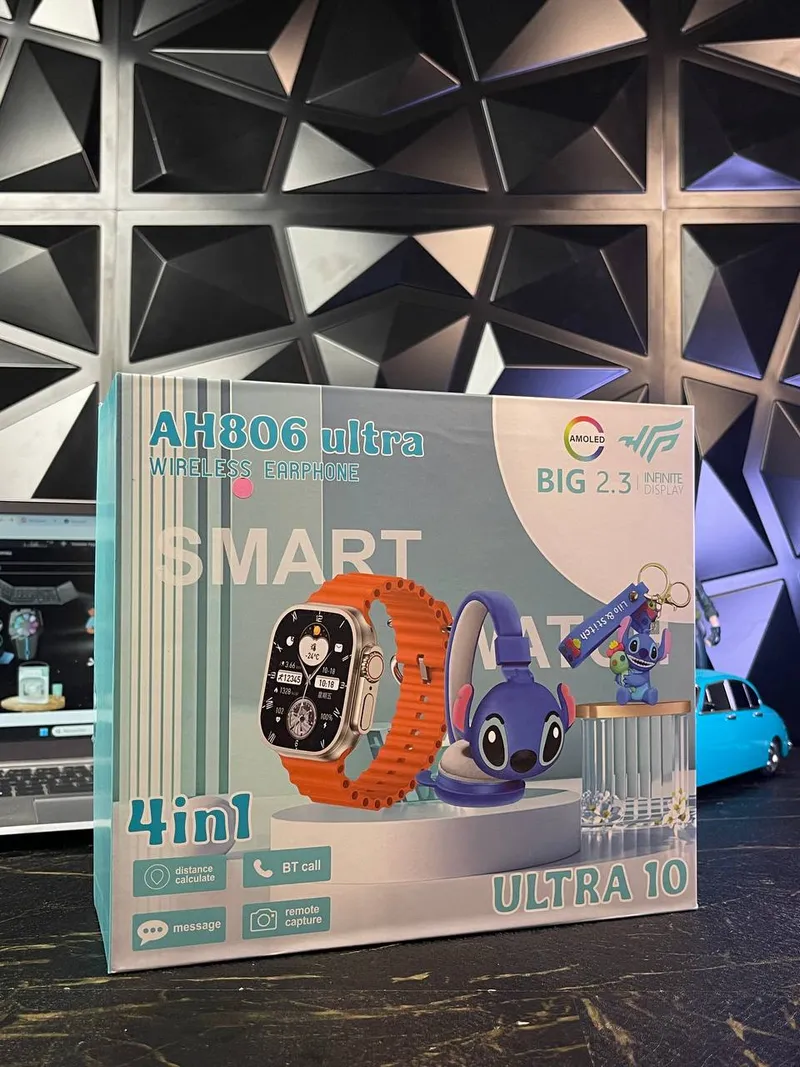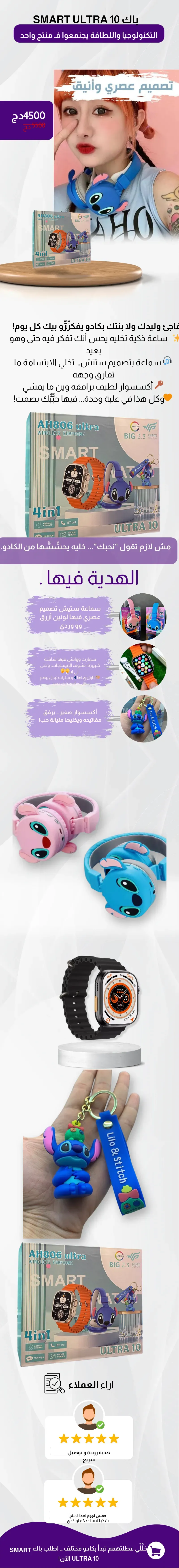 ساعة ULTRA 10 الذكية 4×1 ⌚️ ساعة ذكية بشاشة كبيرة 2.3” + سماعة بلوتوث + إكسسوارات مميزة 💬 مكالمات، رسائل، حساب المسافة، تصوير عن بعد 🔥 تصميم عصري ووظائف متكاملة في جهاز واحد!